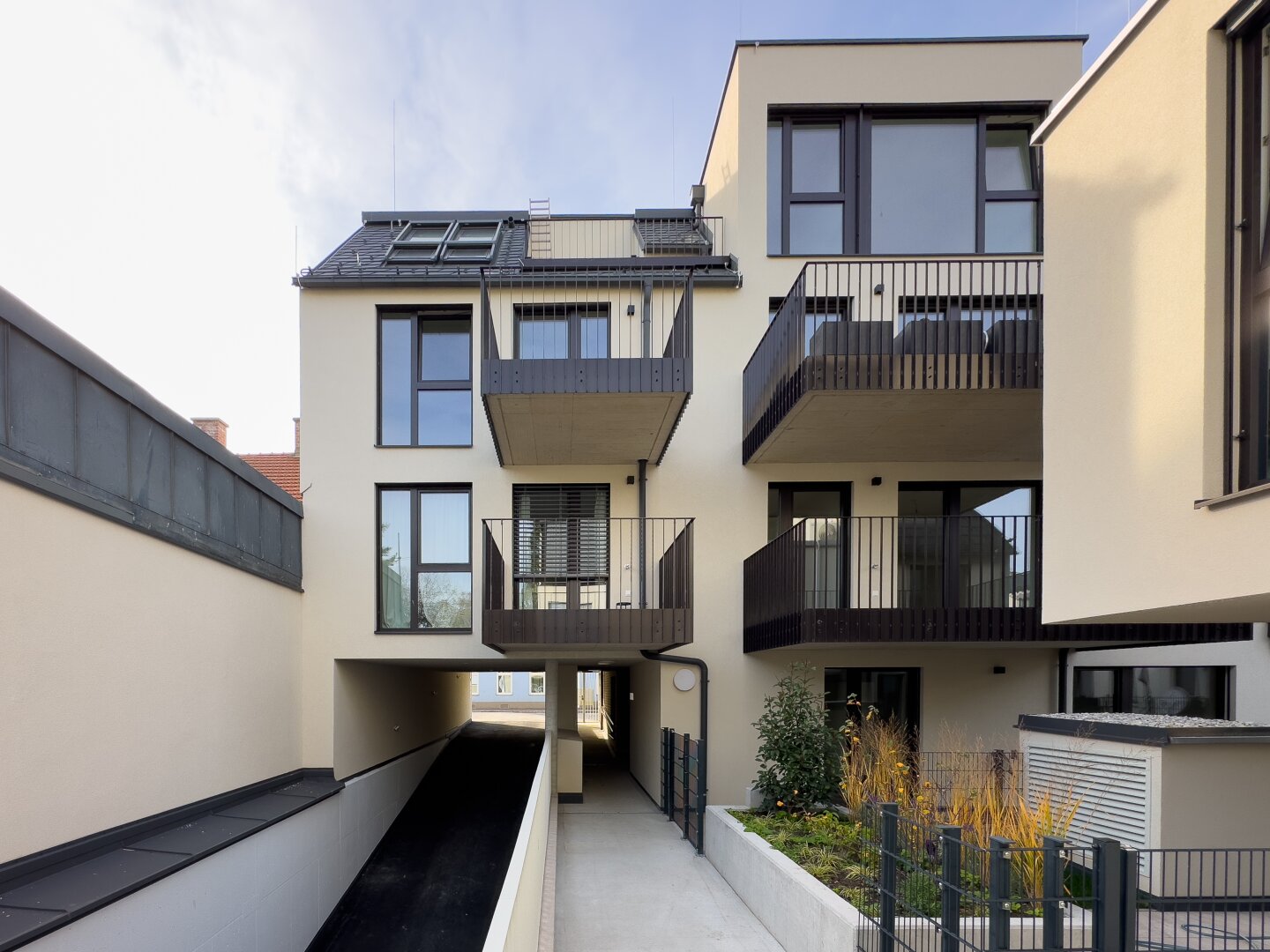 In Vienna Liesing, the modern residential project Klugartown is being developed, comprising a total of 13 residential units. The project includes nine apartments ranging in size from 40 m² to 103 m², as well as four exclusive townhouses in the courtyard. Whether you are looking for a compact 2-room apartment or a spacious 4-room apartment – you will find the ideal home for every life situation here. An underground garage with 11 parking spaces provides additional comfort.