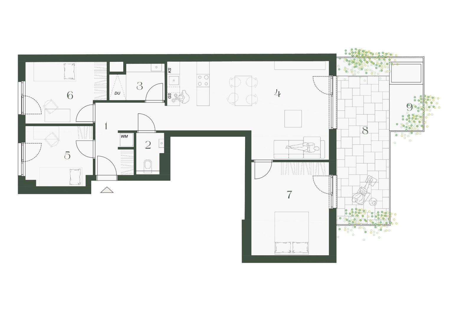 The apartments and townhouses of Klugartown are designed to meet different lifestyles and needs. While the apartments impress with thoughtful floor plans and modern design, the townhouses offer urban living with a touch of home-feeling – perfect for those who wish for a house in the middle of the city. Timeless aesthetics, high-quality materials, and a focus on a homely atmosphere create a home that will delight generations.