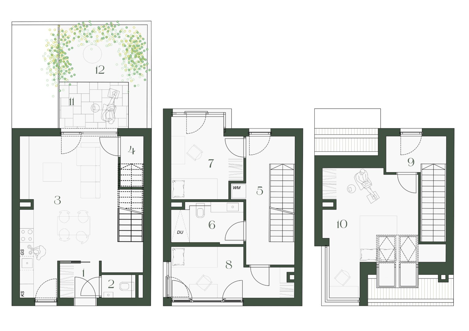 A modern townhouse with three levels, private garden, and terrace is for sale, distinguished by its thoughtful room layout and flexible usage options.