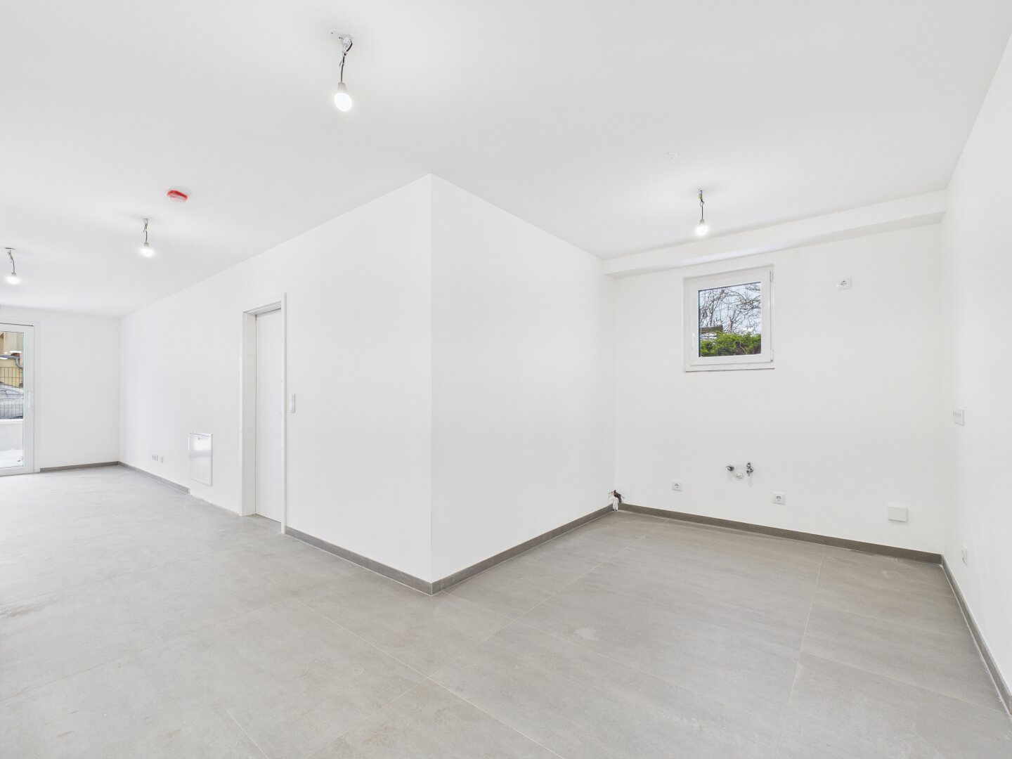 This 98 m² commercial space on the ground floor of a modern multi-family building impresses with a clear structure and high-quality ambiance. Directly from the entrance, the path leads into an open-plan office area of over 31 m², which is ideal as a representative reception or spacious work zone.
