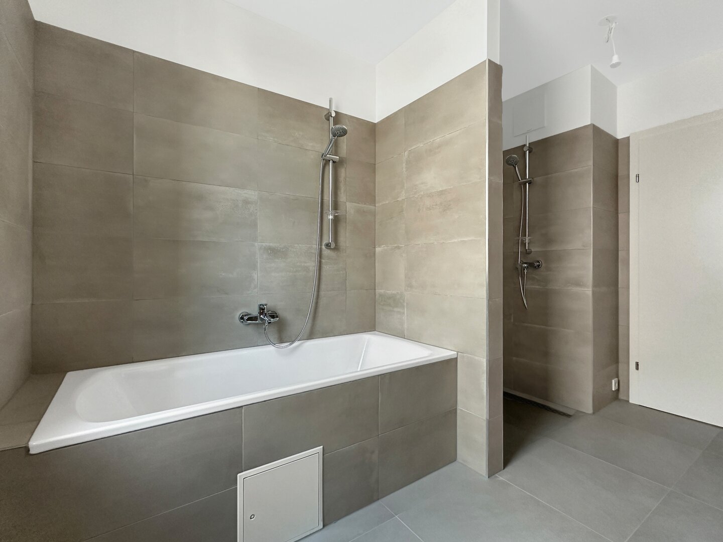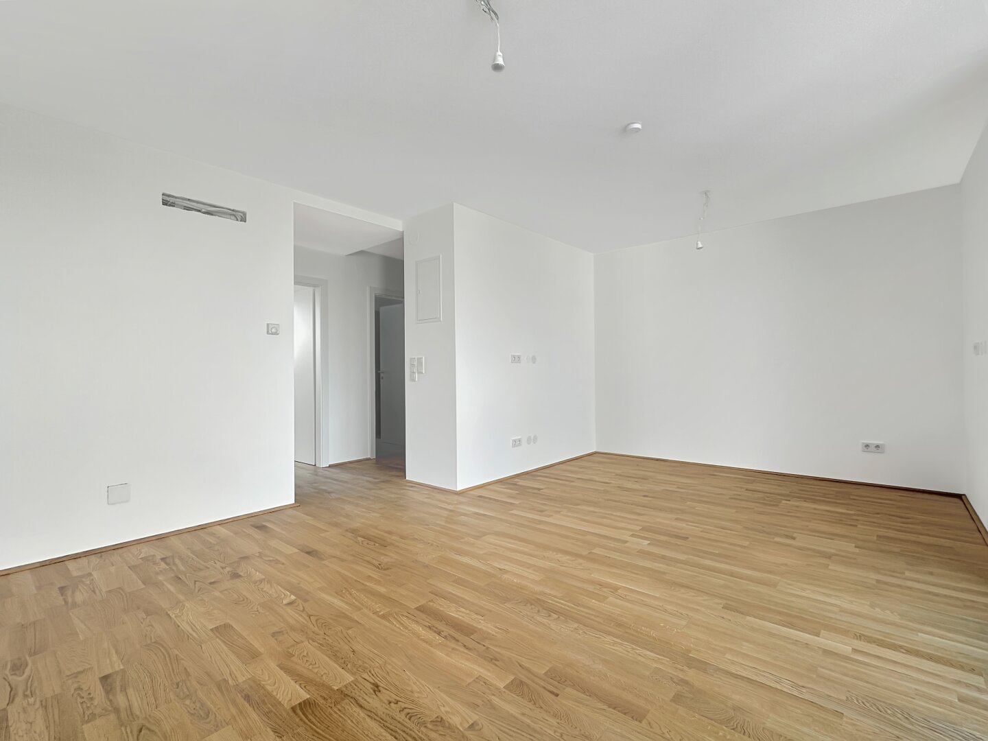 - Hochwertiges Eichenparkett in den Wohnräumen, Fliesen im Format 60/30 in den Nassräumen