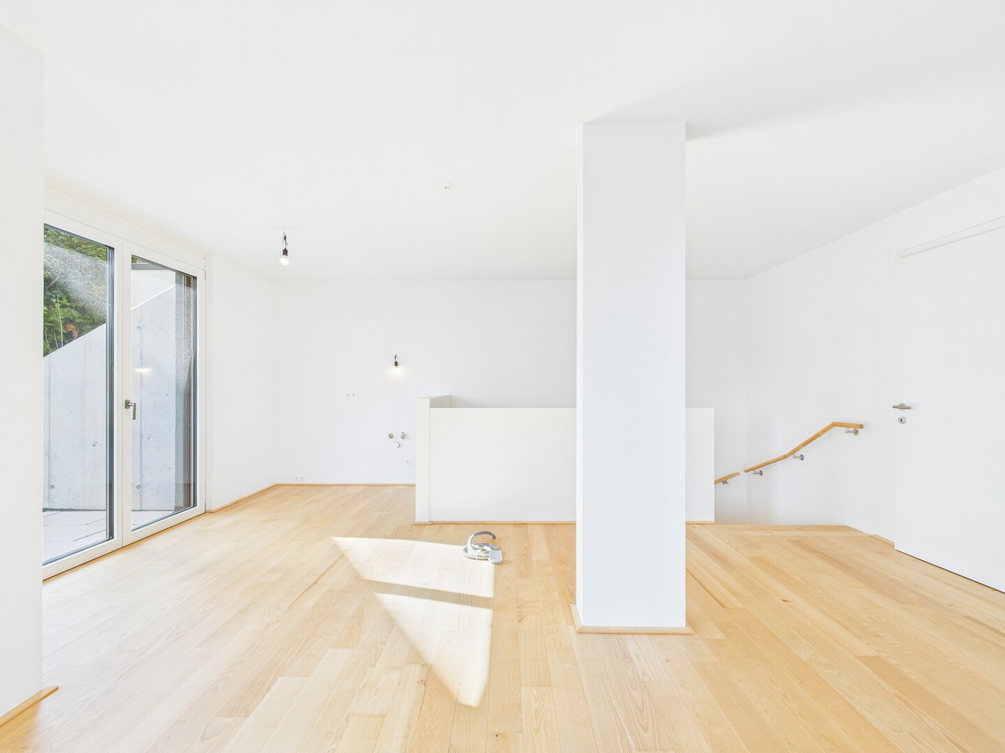 Im Obergeschoss erwartet Sie ein offener Wohnbereich mit einer modernen Wohnküche, die zum geselligen Beisammensein einlädt. Hier finden Sie auch ein separates WC sowie einen praktischen Abstellraum, der Ihnen zusätzlichen Stauraum bietet. Die Wohnküche gewährt Ihnen einen reibungslosen Übergang zur angrenzenden Terrasse, die an warmen Sommertagen zum draußen Essen einlädt. Außerdem gewährt Sie Zugang zu einem Eigengarten mit ca. 132 m², welcher Ihnen die Möglichkeit bietet Ihre Freizeit im Freien zu genießen, Ihre grünen Daumenfertigkeiten auszuleben oder einfach nur die frische Luft und die idyllische Umgebung zu genießen. Verbringen Sie gemütliche Abende mit Freunden und Familie auf der Terrasse und lassen Sie die Hektik des Alltags hinter sich.