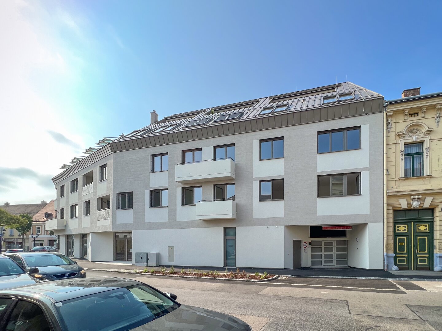 Der architektonische Entwurf besticht durch zeitlose Eleganz und fügt sich nahtlos in die historischen Gründerzeitbauten der Umgebung ein. Die straßenseitigen Wohnungen bieten einen unvergleichlichen Blick auf den prachtvollen Rathausplatz, das historische Rathaus und seine beeindruckende barocke Fassade – ein einzigartiges Wohngefühl mitten in Stockerau.