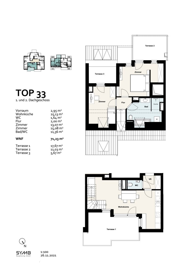 - Zimmer mit 15,08 m² und Terrasse mit 11,03 m²