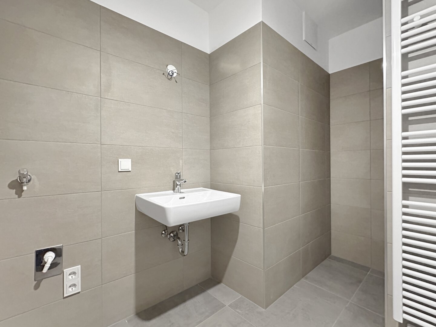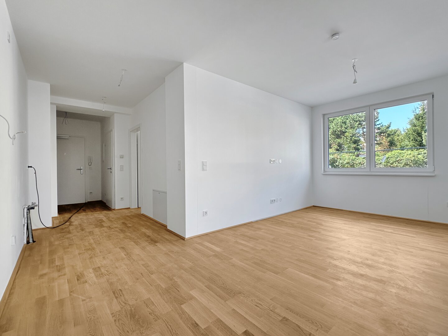- Hochwertiges Eichenparkett in den Wohnräumen, Fliesen im Format 60/30 in den Nassräumen