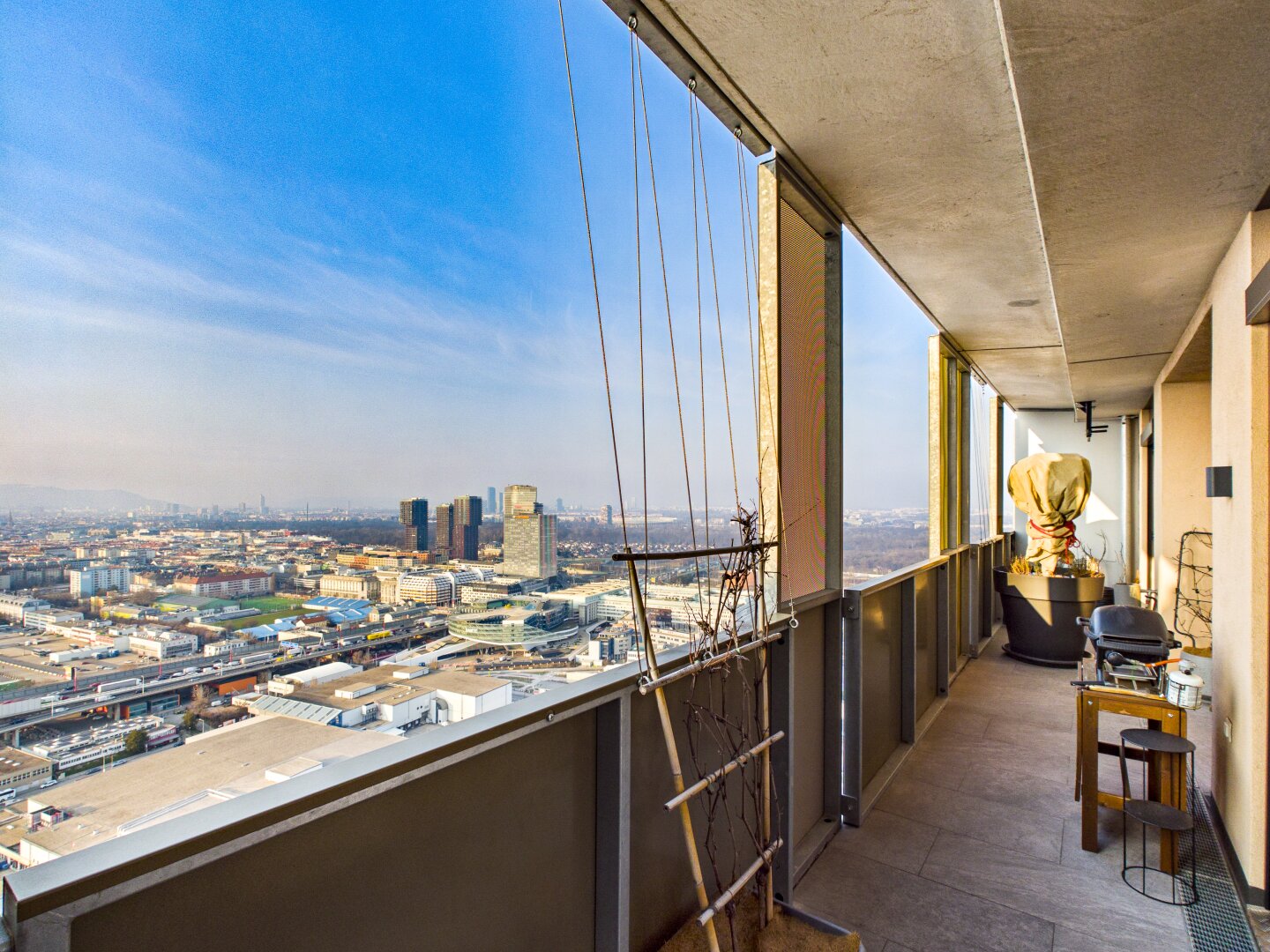 - Außenfläche: ca. 23 m² umlaufende Sky-Terrasse (Terrasse und Balkon verschmolzen)
